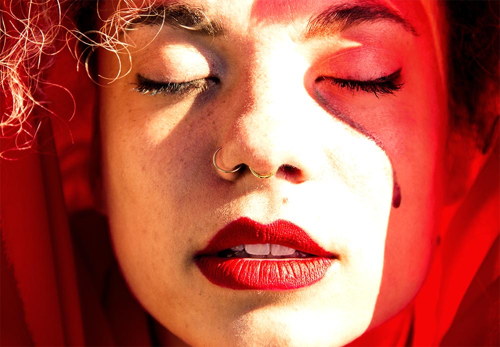 Le projet d'illustrer le fameux texte, voluptueux, de la Bible, avec une modèle et la couleur rouge.